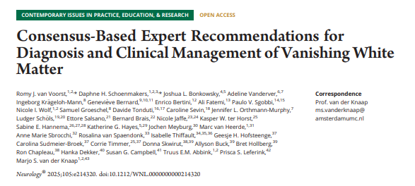 VAN VOORST, R. J. et al. Consensus-Based Expert Recommendations for Diagnosis and Clinical Management of Vanishing White Matter. Neurology, v.105, e214320, 9 dez. 2025.